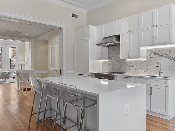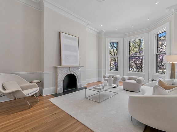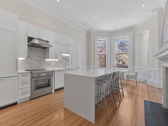 Brand New Renovation in the heart of the Back Bay on Commonwealth Ave! 1721sf, 2BR + Home Office, 2.5BA w/ private outdoor space. Parlor/Garden Duplex. Entering the Parlor level you are greeted w/ 12ft ceilings, marble fireplace, ornate moldings & 2 sets of pocket doors. Sunny floor through with South Facing bow windows offering coveted views of the Comm Ave Mall and Quin Social Club. Custom finishes throughout. Stunning kitchen w/6 ft Island & waterfall feature, paneled Thermador appliances, Gaggenau fridge & Quartz countertops. Off the kitchen is a home office and classic powder room. Lower level primary bedroom fits a King, 3+ closets & en-suite bath offers double vanity + dramatic walk-in shower & herringbone marble floors. New 2nd full bath has shower/tub combo. New "Emtek" hardware on all doors & hard-plank floors throughout the BR level. New Electrolux laundry, Central AC & deeded extra storage. Pets negotiable. Rear access to your exclusive outdoor space. 4-unit building