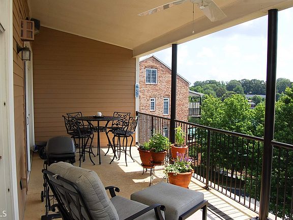 Spectacular apartment immaculately maintained and upgraded throughout. Killer oversized deck with beautiful view of manicured courtyard and Chattahoochee National Forrest beyond. Short walk to Canton St. restaurants and shops. Cathedral ceiling and two-sided gas fireplace in living room. Stone countertops, gas stove and oversize breakfast bar between kitchen and dining area. Extra large master suite with huge shower and very large walk-in closet. Loft with full bath is third bedroom or doubles as office/study. Two resvered covered parking spaces. 2017-09-18