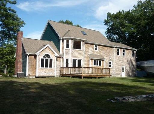 Builders own home. This beautiful 10 room Colonial on cul de sac shows like new. Bright and open floor plan. Custom features include cherry kitchen cabinets, sunken family room with brick fireplace and cathedral ceiling, good morning staircase, french doors, 5 zone F/H/W heat with separate 2 zone central air, central vac, finished attic, tiled finished basement with playroom/exercise room and half bath. Some of the recent upgrades include all new granite counter tops, new Bosch stainless steel appliances including wine cooler, new under-mount sinks and faucets, new light fixtures, new hardwood flooring, new oil-rubbed bronze hardware and new foundation plantings. The interior has been completely repainted from top to bottom. Large flat back yard(room for pool) bordering conservation land. Square footage does not include the two finished rooms or the bathroom in the basement.