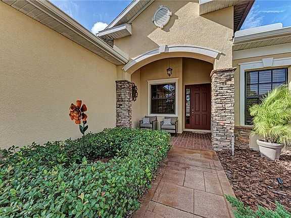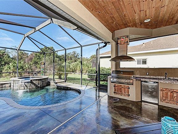 What an amazing opportunity to own a gorgeous, upgrade-packed home in amenity-rich GreyHawk Landing! The open, split floor plan and volume ceilings of this aptly-sized 4 bedroom, 3 bathroom abode can flex to a wide variety of needs, while the outdoor living space, complete with heated "Black Pearl" Pebble-Tec pool and spa, full Outdoor Kitchen, wired speakers and a private preserve view lends the perfect setting for enjoying the Florida weather and taking in the spectacular sunsets. Entertain with ease from your central chef's kitchen and adjacent full wet bar, complete with granite tops, stainless appliances, natural gas range with hood, lighted wood cabinetry, and wine fridge. When it's time to relax, the Owners' Retreat will welcome you with dedicated lanai access, 2 closets, dual sinks, walk-in shower, garden bath, private commode and upgraded tilework. A few of the many other key features of this property include a brand new HVAC and newer hot water heater; in-wall insulation for high energy efficiency; central vacuum; in-wall pest control; re-screened pool cage; backyard storage closet; and all 20"x20" porcelain tile and high end laminate flooring throughout. Be sure to ask for the full features list and to view the 360-degree interactive virtual tour! GreyHawk Landing is a gated community with two resort-style pools, fitness center, lighted tennis and basketball courts, ball fields, bass-stocked lakes, fishing pier, miles of nature trails and fun for all ages!