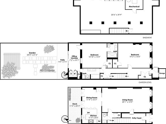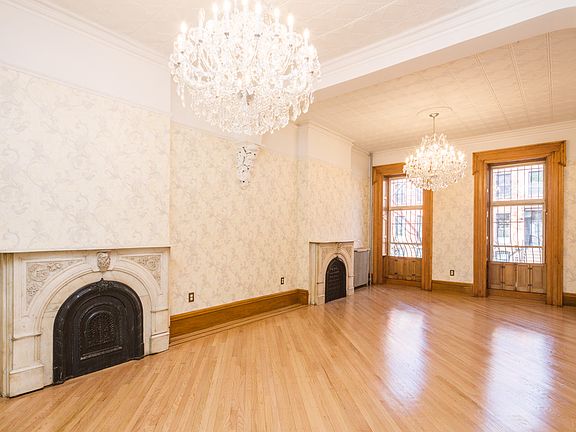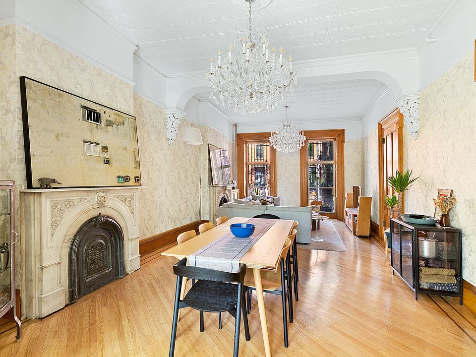 Step into this elegant Landmark home, offering nearly 2,000 square feet of interior space and over 900 square feet of private outdoor terraces, garden, and patio. Enter via the parlour floor, where a grand double reception greets you, adorned with Versace wallpaper, soaring 11-foot ceilings, beautifully restored parquet floors, two original marble mantels, two stunning 36-light chandeliers, and floor-to-ceiling windows complete with original pocket shutters. Beyond the original antique etched-glass panel double-pocket doors lies a formal dining room, dressed in Van Gogh wallpaper and spacious enough to comfortably seat eight. This room features another exquisite antique chandelier and a custom-fitted china cabinet. The renovated, functional chef's eat-in kitchen boasts stainless steel appliances, custom cabinetry, an in-sink garbage disposal, and a hot and cold water dispenser with a purifier. The adjacent dining area opens onto a 20 ft x 11 ft terrace through a pair of French windows, offering views of the professionally landscaped English garden. The terrace, adorned with cedar wood tiles, has a steel railing leading to a spiral staircase that descends to the garden. A door from the parlor floor leads, past a powder room and coat closet, to an interior staircase that takes you down to the garden level. Here, you'll find two king-size bedrooms: one with an en-suite bathroom and the other adjacent to a shared bathroom. From this bedroom, step into a sunroom/office space with a laundry closet containing an oversized washer and dryer. The sunroom's French windows open to a 21 ft x 10 ft tiled patio, perfect for entertaining or peaceful contemplation of the 21 ft x 28 ft garden. At the rear of the garden stands a sturdy cedar pergola, draped with wisteria and honeysuckle, providing a charming seating area. The garden level also offers a separate entrance, and a large storage space/recreation space is negotiable. This grand Brooklyn home features ample closets, many with built-in organizational systems, and self-contained heating and cooling mini-split systems with remote controls, ensuring comfort and convenience. Heat, hot water, and cold water are included in the rent. Located on picturesque Dean Street, this home places you just a short stroll from the fantastic amenities of Smith Street, Court Street, and Park Slope's vibrant 5th Avenue. You'll also be close to the BAM Theatre, Fort Greene, and all the shopping that downtown Brooklyn offers, including the Fulton Mall, Whole Foods, Trader Joe's, and City Point with its diverse food halls and the beloved Alamo Drafthouse Cinema. With quick access to a wide array of subway linesA, B, C, F, G, N, Q, R, 2, 3, 4, 5commuting has never been more convenient. Photos reflect the actual scale of the furniture.