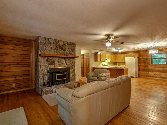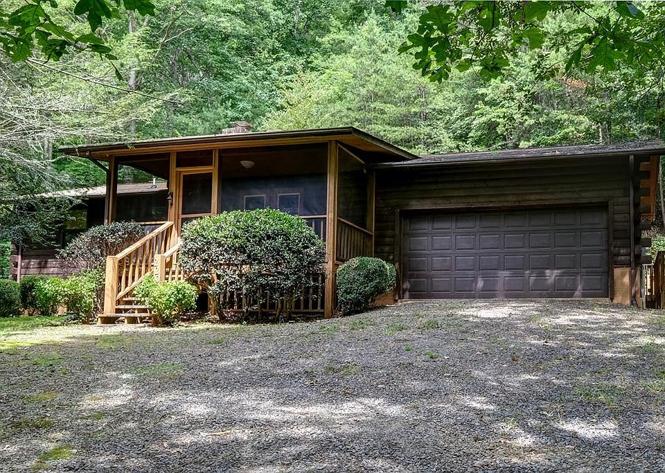 A LOG home with a GARAGE surrounded by nature and privately situated at the end of the road is waiting for you! This 2 bed, 2 bath home is a mere 5-10 minutes from town and features an open floor plan with a unique combination of wood & sheetrock inside to brighten up your spaces. Great Room has wood floors and a wood burning fireplace to warm chilly North Carolina evenings. Kitchen located next to your dining area is open to a bonus room that can be a sitting room, office or whatever your needs are. Down the hall conveniently located is your laundry, guest bed, bath and Master Ensuite. An open deck in the back for BBQ's. This is the perfect place to call home in the mountains of NC!