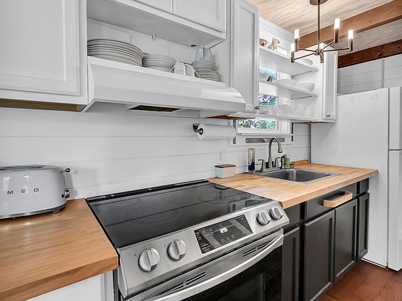 This Charming Cottage Sits on a Beautiful 5-Acre Property in Rural Setting Featuring an Open-Concept Living Area, Spacious Bedroom, AND Full Bath---With a Mix of Modern and Farmhouse Style This Home Features Include Gorgeous Wood Flooring, Shiplap Walls Throughout, and Lots of Exposed Wood Beams on the Ceilings---Spacious Bedroom (12x12) Has Vaulted Ceilings with Sliding Glass Doors to Both the Front AND Back Decks Allowing Plenty of Natural Light---Kitchen with White Cabinets, Open Shelving, Custom Built-in Storage Wall for Pantry Items, and Butcher Block Countertops. Kitchen Also Includes Range, Refrigerator and Stacked High-end LG Washer/Dryer---Around the Corner is the Full Bath with Japanese Style Freestanding Luxurious Air Bath Tub, Marble Floors, Shiplap Walls, Toilet, and Beautiful Vanity---Tankless Hot Water Heater Keeps the Water Warm and the NEW Mini-Split Heat Pump System Keeps it Warm in the Winter and Cool in the Summer---With the Home Only Being 4yrs Old Everything Still Looks AND Works Like New---This Home was Very Well Built, Built to Last, Energy Efficient, and Will Be Around For a Long Time to Come---Less Than 30min to Morehead State University.