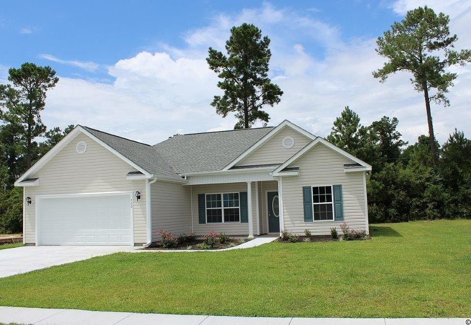 This 3 bedroom home has split bedrooms, a relaxing covered front porch and a rear screened porch. Open floor plan with tray ceiling in the dining area and vaulted ceiling in the great room. Kitchen has breakfast nook with bay window, breakfast counter, stainless steel appliances. Laundry room. Master suite has tray ceiling, ceiling fan with light, walk in closet, garden tub, separate shower and double sinks. Smooth ceilings, 30 year architectural roof shingles, gutters, sodded yard, fully finished and painted garages with automatic door opener and pull down stairs to attics storage. A country quiet community located within 20 minutes of N Myrtle Beach and the beach. Within minutes of downtown Loris, the Loris nature Park, Loris Community Hospital, and McLeod Family Health Center. Large home sites, lake and wooded views. Video is for illustrative purposes only and may be of similar home built elsewhere. Square footage is approximate and not guaranteed. Buyer is responsible for verification.