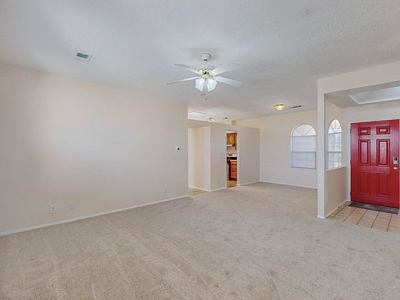 Welcome to this charming 4-bedroom, 2-bathroom home located in the heart of Rio Rancho. This inviting residence features an open floor plan with abundant natural light.. The spacious living area is perfect for entertaining, while the kitchen boasts stainless steel appliances and new countertops. Fresh paint and new carpet throughoutThe primary suite offers a private retreat with a large walk-in closet and an ensuite bathroom featuring a dual vanity and a soaking tub. Three additional bedrooms provide plenty of space for family or guests.Step outside to enjoy the easy care backyard, complete with a large covered patio area, perfect for outdoor gatherings. Conveniently located near schools, parks, & shopping, this home offers both comfort and convenience. Plus refrigerated air! No Poly!
