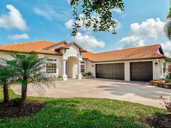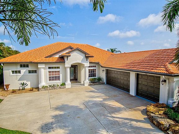 One or more photo(s) has been virtually staged. Welcome to this Impeccably maintained split plan 1 story home in the amenity rich community of Greyhawk Landing. As soon as you walk through the 8 foot front door, you will notice the very high ceilings and tray ceilings and the triple sliders that pocket into the wall to maximize your view of the beautiful pond. There is a formal open dining area as well as an eat in kitchen area. The kitchen has plenty of all wood cabinets and opens up nicely to the entertaining areas of the home. The office/den is large enough that it could also be used as a bonus room. The exterior, interior and garage floor was painted in May 2020 as well as all of the grout steam cleaned and sealed. The very large master bedroom has a bay window highlighting the pond view and a slider leading out to the paver lanai. The masterfully planted landscaping is impeccable and highlights this homes best traits. Greyhawk Landing amenities include two clubhouses and pools, fitness center, playground, park, tennis, basketball, soccer field, baseball field and a 24 hour guard gate with low HOA fees of only $50 year. CDD taxes of $2206 included in the total taxes of $6982. Click on the video link to view the custom exterior and interior video.