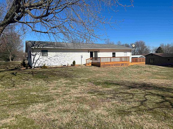 Beautiful Large Corner Lot, this 3 bed 2 full bath Ranch has been well maintained. It's in a wonderful quiet friendly neighborhood. Outside there is a very nice wrap around deck for those backyard parties and BBQs, a 24 x 27 carport and a 12 x 10 storage shed. Inside there is a Main Bedroom Ensuite, spacious newer Family Room added for those larger gatherings, along with updated paint etc. The Kitchen Appliances and Washer and Dryer are included in sale. Conveniently located close to Crane and I-69, Hwy 50 etc.