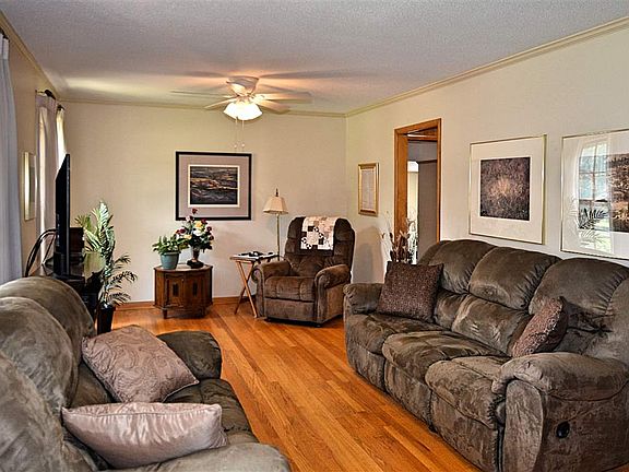 - LIVING ROOM DESC: Crown Mold, Wood Floor, Ceiling Fan