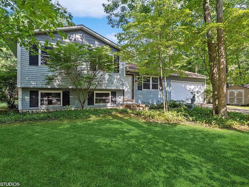 WELCOME TO THE WOODS - This 3 Bedroom, 2 Bathroom quad-level is situated on a double lot in the highly sought after Michiana Shores community. Located on a quiet and quaint street, this home has many possibilities to be the perfect match for the full-time resident or 2nd home owner. 2 Bedrooms located on the upper floor with a full bath. Lower level currently used as additional living space with a brand new wood burning fireplace. Lower level could easily convert back to a Primary Bedroom with a spacious en-suite. Additional storage room and Laundry area. Newer HVAC and 2 Hot Water Heaters. 2 car attached garage with extra space for a work bench. Ample amount of additional parking. Storage shed for your beach toys and lawn equipment. Easy 5 minute walk to Stops 37, 38, or 39. Bring your imagination and get ready to create your Michiana dream, schedule your showing today!