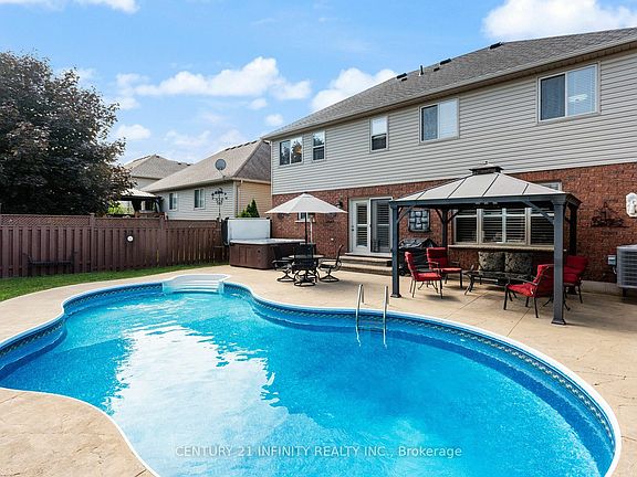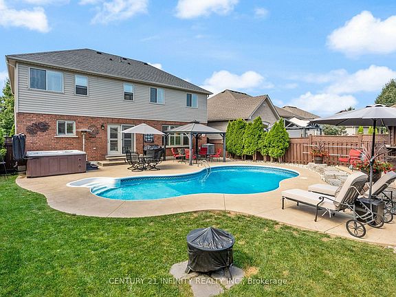 Welcome To 220 Dundas Street West, Nestled In The Heart Of A Peaceful Paris, Ontario Neighborhood, Where Charm And Tranquility Converge. This Expansive Family Haven Is Designed With Your Every Need In Mind. As You Step Inside, You're Greeted By An Open-Concept Main Floor That Seamlessly Connects The Living, Dining, And Kitchen Areas. A Gas Fireplace Is The Centerpiece Of The Living Area, Providing A Cozy Atmosphere For Gatherings And Relaxation. Five Bedrooms Provide Ample Space For The Whole Family, While Four Well-Appointed Bathrooms Ensure Convenience And Privacy. Escape To Your Private Sanctuary In The Primary Bedroom, Complete With An Ensuite Bathroom And Walk-In Closet, Offering A Perfect Place To Unwind. Step Into Your Own Private Paradise As You Discover The Spacious Backyard. An Inground Saltwater Heated Pool Awaits Your Summer Enjoyment, While The Hot Tub Offers Year-Round Relaxation. Don't Miss The Opportunity To Make This Remarkable Family Home Your Own.