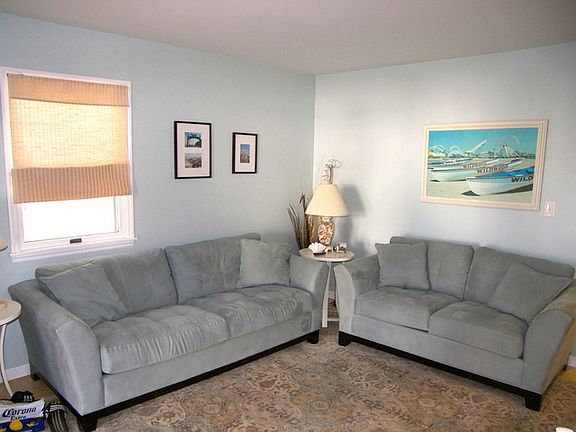This is a modern three bedroom, one bath condo with a 2 car parking driveway and large covered deck to enjoy the beautiful breezy nights. The living area and kitchen are spacious, and the kitchen has a snack bar. There are hardwood floors throughout the living areas and heat and central air for year round use. The unit is well maintained, with attractive paint colors and furnishings. The roof was replaced toward the end of 2012. There is a laundry room with washer and dryer inside the unit for your convenience. The unit is being sold furnished, less personals. This condo is within close proximity to beach and boardwalk, as well as shopping, restaurants and taverns, etc. There are no monthly condo fees, however the insurance expenses for flood, fire and liability, as well as water and sewer, are shared with the other unit and the amount is approximately $800 -$1000 for the year for this unit. Common area maintenance is also shared 50/50. Call today for your appointment at 609-729-5108!