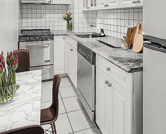 Full-Service Luxury Coop at an affordable price! This is a large 1 bedroom/1 bathroom, with a spacious kitchen with plentiful closet space. Its very bright with a southern exposure, quiet and peaceful with some open city views. The apartment features an extra large living room with a dining area by the kitchen. The bedroom easily fits a king sized bed and plenty of furniture. Great closet space throughout the apartment. The apartment faces the back and is very quiet. The apartment has just been fully painted and all floors have been sanded and re-finished. It really looks great!