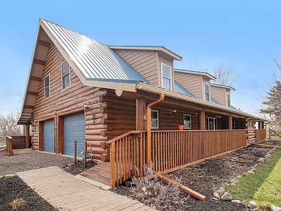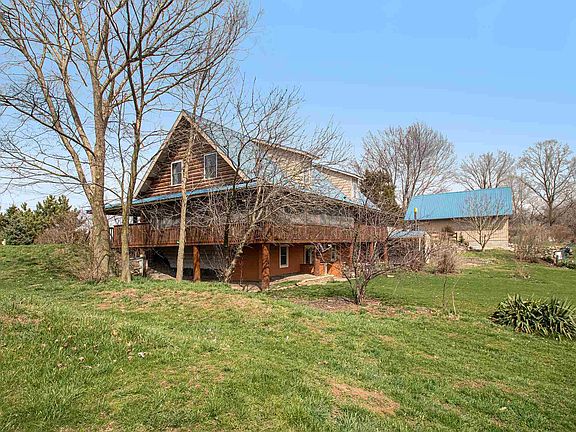 This large log home with 5 bedrooms and 3 baths is nicely situated on 11.5 acres. This home is a must see to truly appreciate. The large open floor plan and large rooms are perfect for those with large family's or those who like to entertain. The low maintenance hardwood flooring throughout the home gives you that true log cabin living feel. The large covered porch looks over the beautiful backyard and pasture area where there are 2 stocked ponds. The large outdoor wood burner keeps your heating costs low even thought the owners have installed a forced air furnace as a back up. The large outbuilding has a full drive in lower area which could easily accommodate horses or livestock. There is just to many things to list about this property! Make plans to check this one out and make your dreams of country living a reality!