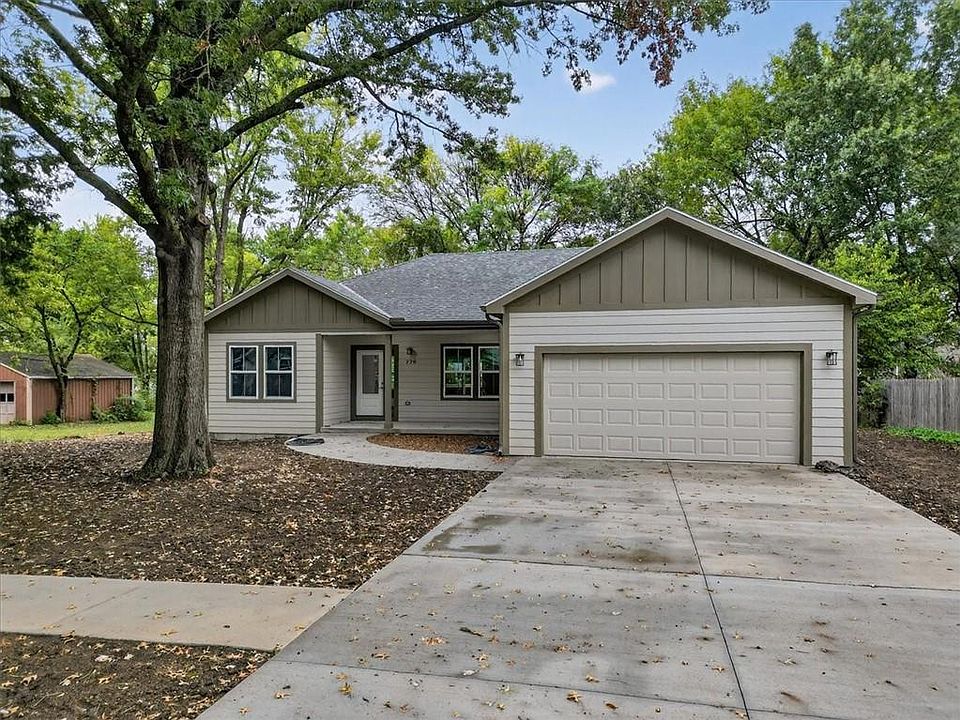 Welcome to this brand-new, beautifully finished home offering the perfect blend of modern style and everyday comfort. Step inside to find an open-concept layout with luxury vinyl plank flooring, tall ceilings, and abundant natural light. The kitchen is a showpiece—featuring crisp white cabinetry, granite countertops, stainless steel appliances, and a striking green island that adds character and warmth. The primary suite includes a spa-like bath with dual sinks, a tiled shower with glass doors, and a spacious walk-in closet. Additional highlights include upgraded fixtures, neutral tones throughout, and a convenient main-level laundry room. Outside, enjoy a brand-new deck overlooking a tree-filled yard with plenty of room to play, garden, or entertain. Bonus opportunity: Buyers have the option to purchase the adjoining lot expanding the property to nearly half an acre—a rare find for new construction!