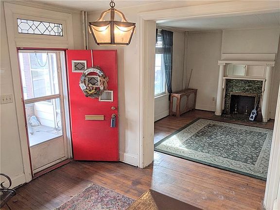 This 4 bedroom 2 full bath brick home situated on a corner lot has plenty of living space. Points of interest include hardwood floors, large open kitchen with a separate pantry, formal dining room, full bath up full bath down, secondary staircase leading to the kitchen, full 3rd floor for lots of storage or a 5th bedroom, attractive ceramic faced fireplace, front lead glass widows on the first floor, enclosed heated sunporch, rear mudroom and fenced back yard with detached block garage.