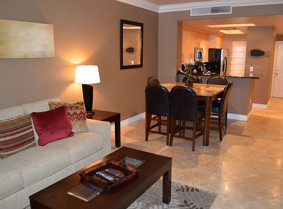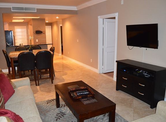 Fully Furnished 2 Bd / 2 Ba Condo just 1 1/2 block to the heart of the Las Vegas Strip located in a 16 Acre Lushly Landscaped Community. Unit is Equipped with Wood flooring in bedroom areas and closet spaces, stone floors throughout unit, granite counter tops, stainless steel Refrigerator, Range, Microwave and Dishwasher appliances. MINIMUM LEASE TERM REQUIREMENT 3 MONTHS Additional Rental Features: Smart Tv's in Living Room and Master Bedroom. Central air condition and heat, deep closet space great for storage, crown molding, Balcony accessible from living room and bedroom, cable ready, upgraded doors and hardware, Washer and Dryer inside condo, and much more. Rent: $2295.00 (with utilities , and internet included) Security Deposit: $2295.00 Application Fee: $100.00 Lease Admin Fee: $100.00 Cleaning Fee: $400.00 Sewer: $12.00 **Tenant Liability Insurance Required** (renters insurance) **Minimum Lease Term 3mo**