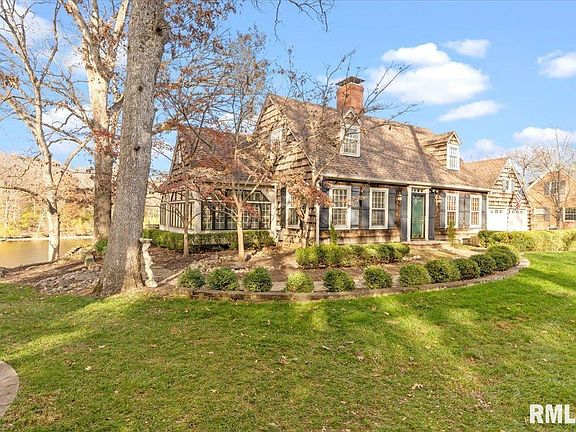Get ready to FALL IN LOVE, because here's your chance to stake your claim on the shores of Lake Springfield! Let the anticipation of the visit build as you navigate your way through the winding hills of this tree lined street on East Hazel Dell. You're certainly not going to be disappointed when you arrive! The feel of this meticulously cared for Cape Cod Cottage adorned w/Cedar Shake siding & appealingly lush landscaping, aids in the affect that you're actually on Nantucket Island! This home has been filled w/the love of the same family for near 60 yrs, & you can feel it as soon as you enter. You will be greeted by updated 3/4" true hardwood throughout, & subtle touches of that country feel w/ a Walnut Shiplap Paneled study, blended w/modern amenities & updates. Roof New in '16, Furnace New in '14, Water Heater New in '12. Replaced breaker panel & updated wiring. Updated Kitchen offers flawless Cherry Cabinets that blend perfectly w/the Hardwood floors & SS Applncs including a DBL Oven. Finished basement space that has been waterproofed w/sump pump added for peace of mind! Whole House generator in place. Lake Drawn Water Irrigation system. Blown-in insulation added in attic, & the list goes on! Awesome additions to the home w/ a Formal Dining Rm, Living Rm, 4season Sunrm, & Primary Bedrm w/attached en-suite, ALL boasting beautifully scenic views of the lake & the private wooded backdrop. The Back Yard is amazing w/its tiered deck space, stone walkways, Gazebo, Dock & a VIEW!