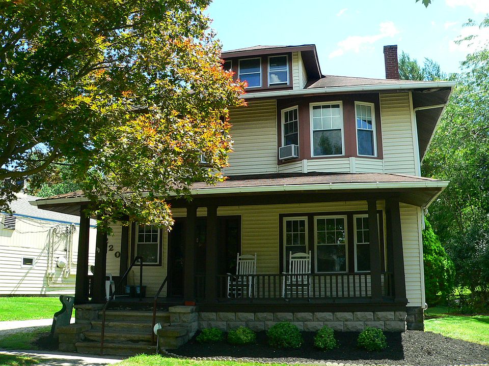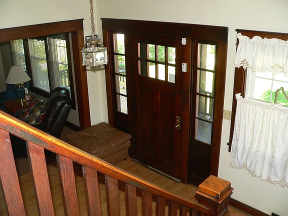 Beautiful updated eat in kitchen features tons of cabinets, quartz countertops & desk area. Newer laminate floors in kitchen & dining room. Mostly newer replacement vinyl windows. Patio doors to back deck from the dining room. Pretty natural woodwork & open stairway. Covered front porch. Very deep lot with nice trees. shed & basement for plenty of storage. Not many real 5 bedroom homes! First floor bedroom & bath too.