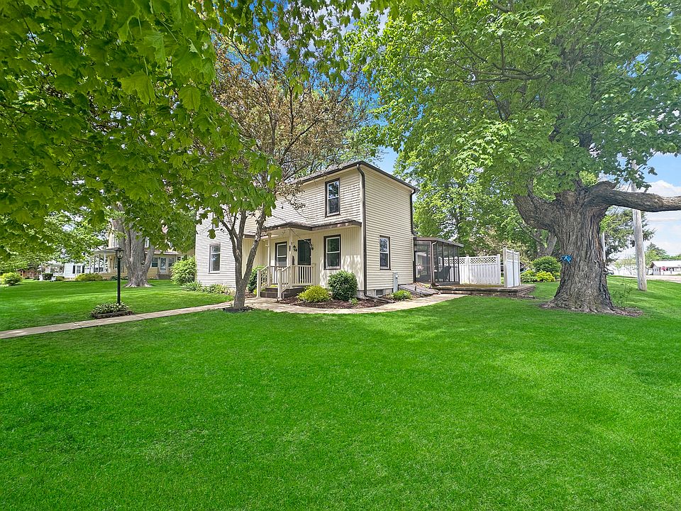 Wonderful Home situated on a Corner Lot Boasting 4 Bedrooms, 2 Full Bathrooms, Office/Attic Room, Main Floor Laundry, Large Kitchen with Walk in Pantry, Gas Forced Air Heat & Central Air. This Home Features Lots of Natural Light with Updated Windows. Great Spaces Outdoors - 3 Seasons Porch and Private Patio. All Newly Updated in 2022 Including Kitchen, Bathrooms, Flooring, Fresh Paint, Fixtures & Landscaping. Spacious Yard with Alley Access to the Driveway and Garage.