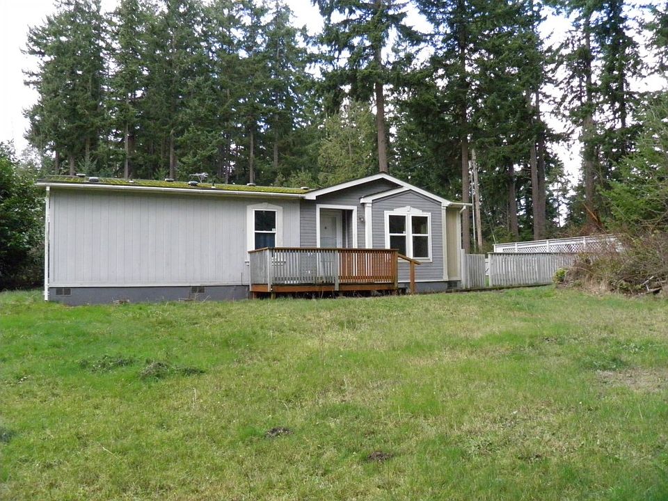Large sunny corner lot with 3 bedroom 2 bath manufactured home in Port Hadlock. Roomy kitchen features a breakfast bar. New vinyl floors in kitchen and utility room. Interior has been recently painted. Vaulted ceilings with plenty of windows to let in the light. Master bedroom features attached bath and two closets. Garden shed. Plenty of space for gardening, pets, etc. House is on the bus line.
