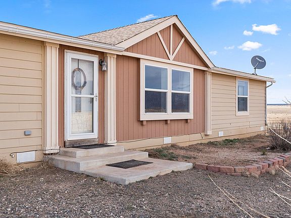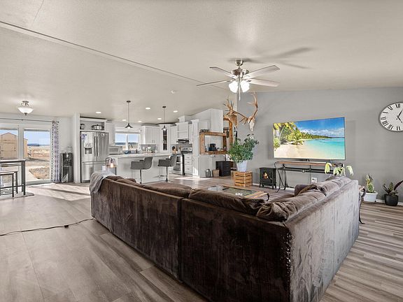 This 2013 Cavco double wide has been well kept with many upgrades to the primary bathroom, and Laminate Vinyl Flooring installed throughout the home. Stainless steel appliances, modern countertops, and a bright open floor plan with large bedrooms and walk in closets creates a comfortable, spacious home. On the exterior you'll find a detached two car garage, a windmill set on a water producing well, a dirt tank all on 79.5 fully fenced acres.