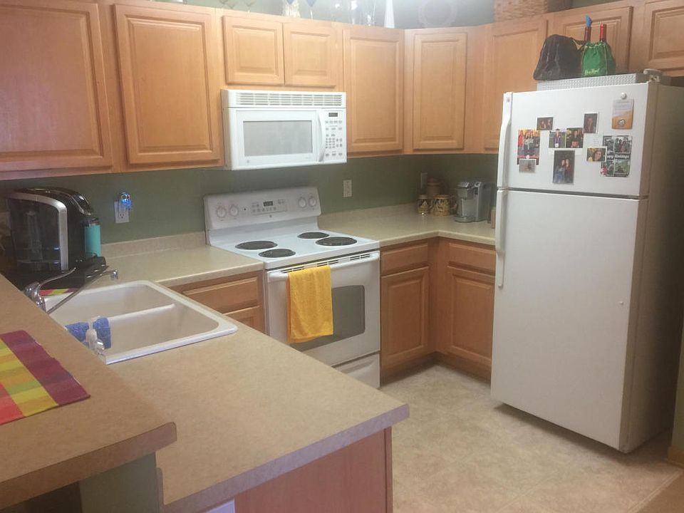 Second floor, 2 bedroom, 2 bath condo with an enclosed stairway and attached 1 car garage for secured entry. Laundry area in unit with open concept kitchen/dining & living room. All appliances included. Plenty of closet space and deck. Dues include water & sewer, lawn care & snow removal.