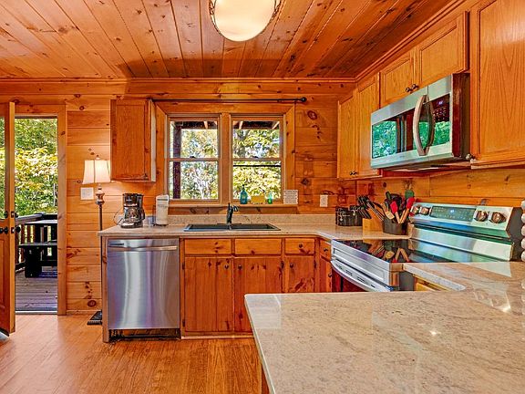 Panoramic long range mountain views for days from this 3 bedroom plus a 4th Bunk Room cabin in North Georgia. All 3 levels boasts views from almost every room inside to take in the Sunset! Walk out Decks from each level. You can't find this everywhere!! Rental History. Open living room, dining, kitchen area with Wood Burning Fireplace, Brand new kitchen and appliances, New master bathroom, New lower porch for outside games and steps to the Fire pit. Serenberry Vineyards is just at the base of the Mountain, 15 minutes to Lake Blue Ridge, Downtown Blue Ridge and Toccoa River. The best thing about this property is These Views are Never going away since the lot goes down the backside to keep the view forever trimmed out! Furnishings negotiable on a separate bill of sale 2023-08-22