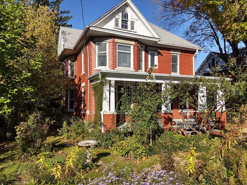 Historic brick home, one of only a handful in town--a rare opportunity. Visitors to this home always comment on its beauty. Well maintained with hardwood floors, hand-carved oak buffet and other wood features. New completely remodeled kitchen. Recent complete bathroom remodel. Bay windows let in lots of sunlight. Many new windows. Electrical updates. Lots of storage space in closets, full walk-up attic and basement. A gardeners dream with many flowers and an attached gardening shed. Tree (play) house located in big, deep back yard with is entirely fenced. Located on the east side, 3 blocks from downtown. Fully insulated and energy efficient.