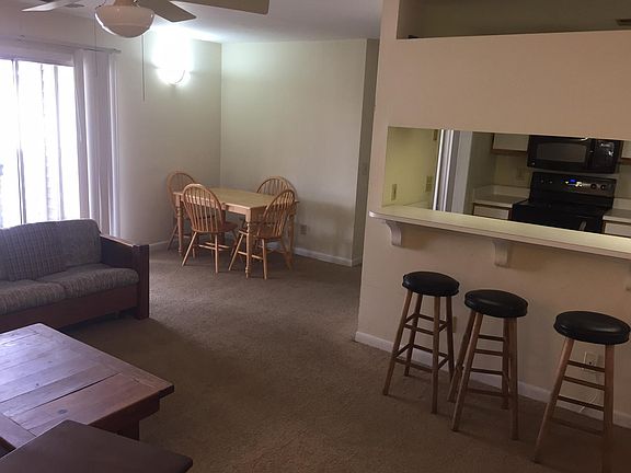 Super close to campus and on the CAT bus route, this 4 bedroom condo has all new floors and comes furnished with beds and night stands, couch, coffee table, tv in living room, and dining room table. In unit laundry - washer and dryer are included. 3 spaces available - rent is per room. Available August 2023! No smoking allowed. Current tenant is a male sophomore english major. Utilities not included in monthly rent price. Plenty of parking available next to building. Lease is 12 months.