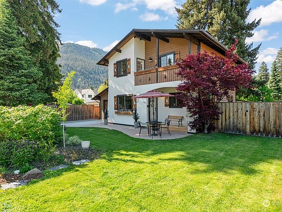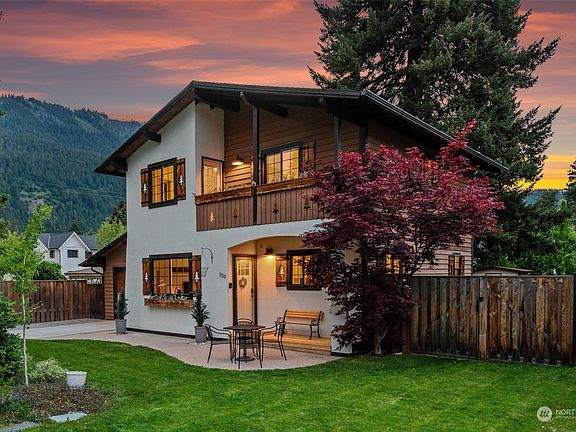 Every inch of this home has been lovingly updated with newer appliances, fixtures, and finishes, offering a fresh & inviting atmosphere. Unwind in this cozy yet spacious living area. Upstairs, you'll find 3 light filled bedrooms. Enjoy morning coffee on the balcony off the primary bedroom. The backyard is ideal for relaxing evenings or lively gatherings w/ friends. Additional features of this home include sprinklers for easy lawn maintenance, central heating & AC, new gutters, new windows & doors. Roof is just 4 yrs old, providing peace of mind for years to come. With its prime location just steps away from downtown Leavenworth's restaurants & attractions, this home offers the perfect blend of urban convenience & serene living