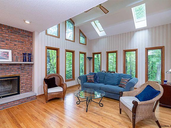 This lovely Guilderland custom home, located on a quiet cul-de-sac, offers a retreat-like setting. Enjoy this 4 bed, 2.5 bath home which includes: 1st floor bedroom, updated kitchen w/SS appliances, renovated 1st floor laundry & freshly painted decks. Plus there is a large master suite w/ renovated spacious bath and private deck. A generous finished walk out basement w/ new carpeting, completes this special home. An incredible value & must see property!"