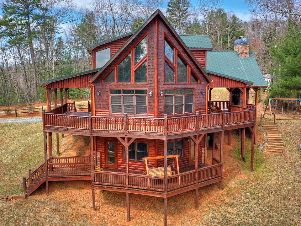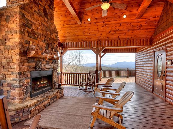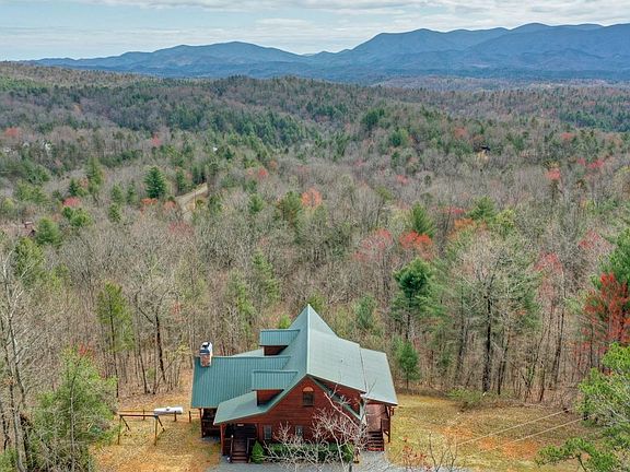 It's all about the VIEW! 3BR/3BA lodge style home on 2 acres w/YEAR ROUND LONG RANGE MTN VIEW! This PROW front home is above the rest-true quality finishes! Hand hewn logs, 27 gauge metal roof, abundant lighting, custom pine bark trim on doors/windows. Featuring a WOW great room w/soaring cathedral ceilings, wall of windows, stacked stone fireplace, granite counters in kitchen, under counter lighting, cabinets galore, dining area. Bed & Bath on each level, all en-suites; well appointed baths. Wait 'til you see view from LOFT! Finished terrace level has lg wet bar, family/game room w/gas log fireplace, surround sound, storage. Wrap around decks & porches w/woodburning exterior fireplace. Usable, unrestricted land; pre-wired for garage; 50 amp service for RV; private well, dual fuel HVAC; no HOA fees, 7 miles from town, no steep roads! Much more! See V-Tour! (Furnishings negotiable)