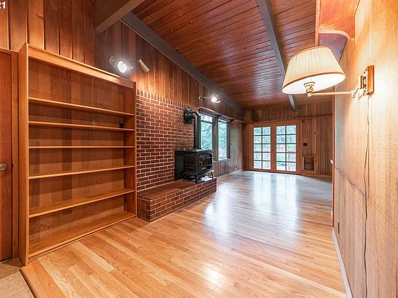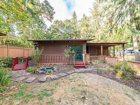 A zen retreat nestled into the South Hills. Unique, well-maintained, very private. Double pane windows, gas wood stove, dining nook. Master bedroom/bathroom with french doors leading to private patio. Cedar lined closets, cedar paneling, several skylights. Newer shed with electricity. County-maintained creek borders one side of property. Fenced yard with sprinklers.