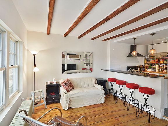 This 1920's classic and lovingly restored single family townhouse with 2.5 Bedrooms, 3 Bathrooms, Private Terrace and a finished basement on a gorgeous tree-lined street in Williamsburg is incredibly unique. The space has beautiful marble bathrooms and an open kitchen and partial skyline views. It is situated a short distance away from the Graham L train station and restaurants like Oak Wine Bar, Mesa Coyacan, Sel de Mer, Fanny's and Variety Cafe. This is a light-flooded space with beautiful original wide-plank wood floors throughout and original beamed ceilings. This is not your run-of-the-mill cookie cutter home. The roof, gas/boiler system, wall insulation, basement plumbing and soil pipe are all new.RE Tax is 165.17 per month