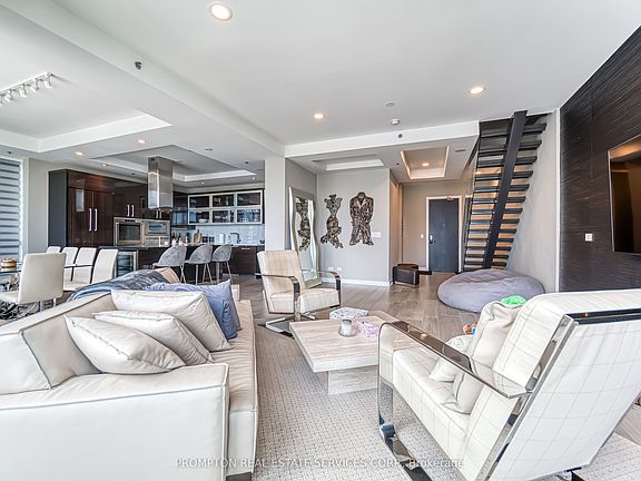 Absolutely Stunning Custom 2-Storey Penthouse in the Heart of Downtown Toronto! This sun-filled 3-bedroom, 4-bathroom residence offers luxury living just steps from the Eaton Centre, top restaurants, theatres, shopping, and the subway. Soaring 10-ft ceilings, floor-to ceiling windows, and 8-ft solid doors throughout. Modern floating staircase with glass railing, sleek custom lighting, and two spa-inspired ensuites. The Italian-designed kitchen features granite countertops, a large island, and solid cabinetry.