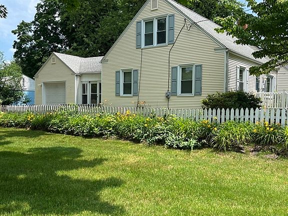 Lovely corner lot. Shows off this good sized cape. Enclosed breezeway, 1 car attached gar. You’ll love the large liv rm. w/ fireplace, big picture window and gorgeous wood floor. Eat-in kitchen, ceramic flr. Upgraded shaker cabinets. Pantry closet. 1st flr. Also offers 1 bedroom, and den. Both with wood flrs. 1st floor full bath. Upstairs offers 2 more good size bedrooms, 1 has large walk-in closet. Both offer wood flrs. 1/2 bath upstairs large enough to ad shower or tub. Full basement offers partially finished simple rec rm. with dry bar. Other side has washer and dryer hook up, and mechanicals. Hatchway to access from outside.Nicely landscaped yard with plenty of gorgeous perennials. Easy to show.
