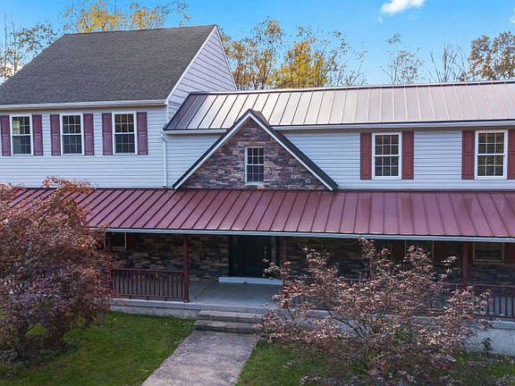 Calling all outdoor enthusiasts! 5 bedroom, 3 bathroom home on 6.5 acres in Bucks County that would serve a variety of uses. This property is mostly wooded with a large cleared space that would be great for horses. The original portion of the farmhouse dates back to the early 1900âs and now features plenty of living space. Inside is a large living room with an energy efficient pellet stove against the backdrop of a stone wall. A large game room that could also serve as a home office features double doors and a large loft space. The eat-in kitchen has plenty of cabinet space with stainless steel appliances and a breakfast bar. Sliding doors off the kitchen lead you out to a covered deck. Upstairs, you will find a large owner's retreat with a walk in closet & en suite bathroom. 4 additional bedrooms and a full bathroom complete the second floor. A detached 2 car garage features plenty of additional room for workshop space. Newer roof with low maintenance metal roofing. Easy access to 563 and 309 for easy travel. Schedule your private tour today.