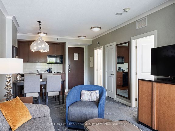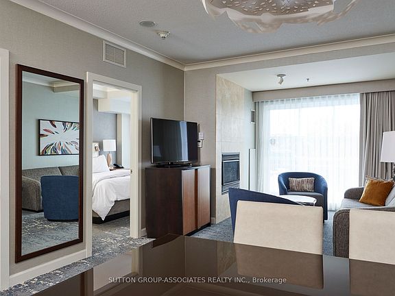 Stay in luxury in Blue Mountain. Located at the most peaceful end of the resort, this amazing 1 bed, 1 newly renovated bath, fully furnished Westin Trillium House and the Village at Blue Mountain. Relax in front of the gas fireplace after a day on the slopes. Living space and bathroom were completely refurbished in 2024. Enjoy all the luxuries and amenities of owning a Westin, including valet parking and a ski locker. The building amenities are superb with the well-equipped Exercise room, 2 Outdoor hot Tubs and the beautiful Year-Round Outdoor Swimming Pool, plus Indoor Sauna and a 24 hour concierge. There is even an Oliver & Bonacini located off the lobby for easy room service. Stairs leading down one level to your secure locker is located right across the hallway. Along with an outside exit that offers easy access to the plunge pool - perfect for young kids. The walk to the silver bullet lift is less than 2 minutes from the unit. You also have the option of joining a fully managed rental program to help cover the costs of ownership, still allowing liberal access for owners. Bonus for ski buffs is the Blue Mountain ownership program where you get discounts in the Village and great discounts off lift tickets. Suite comes with an ensuite, glassed-in shower, balcony, gas fireplace, kitchenette, dining area, pull out sofa with sleeping capacity of 4. Suites include secure locker for storage of personal items. Resort is pet friendly. 2% Village Assocation entry fee is applicable. HST may apply in certain situations.