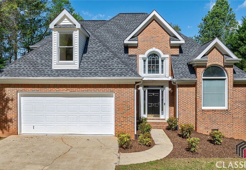 This spacious home has so much to offer and is tucked into a private, conveniently located swim and tennis community! FEATURES: *Traditional curb appeal featuring brick two story on a quiet street with mature trees and a private fenced backyard *Beautiful hardwood floors throughout *Two story foyer entrance with soaring ceilings, natural light, and curving staircase *Great room with vaulted ceilings, fireplace, and access to large back deck *Spacious eat-in kitchen with center island and plenty of cabinet and counter space *Dining room off kitchen also offers potential as a home office *First floor owner's suite with large ensuite featuring separate vanities, garden tub, separate shower, and walk-in closet *Three additional bedrooms and full bath upstairs *Two car garage UPDATES: *New HVAC 2020 *New Roof 2019 *Freshly prepped with neutral paint and ready for your touch