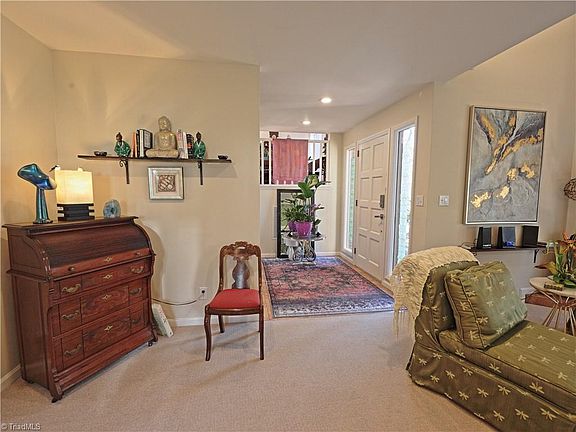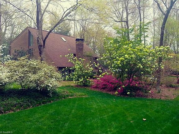 Moving to the area but need to be close to the hospitals? This unique property is just 4.6 miles to Atrium Health Wake Forest Baptist Medical Center. Additionally, it is only 5.3 miles to Novant Health Forsyth Medical Center. Mid century modern meets contemporary on a quiet cul-de-sac street. Whether you are looking to entertain, run an AirBNB, or escape to your personal oasis the in-ground pool and spa combo are sure to meet your needs. Large windows in every room allow the natural light to enhance this home’s unique interior features. Separate formal dining room, updated eat-in kitchen with plenty of storage and pantry. Garage entry in kitchen. Main level Den with built-in wet bar made from Sapele Wood from S. Africa (it keeps wine bottles cool)! Sliding glass doors to the pool/patio from the Den. Large Owners Ensuite with updated bath and walk-in closet. Enjoy your favorite beverage on your private balcony overlooking the pool. New permitted storage building used as art studio.