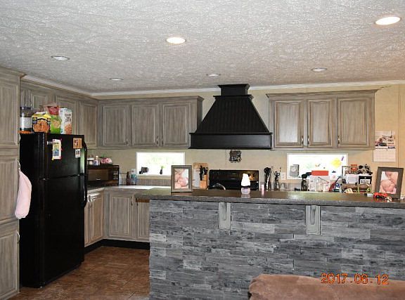 Less than a year old 28x80 2016 Kabco mobile home sitting on approx. 2 acres. This beautiful home features 4b, 2b, walk- in closets, lg master, an open floor plan with a stone island in the kitchen and a large front porch with double carport. Call for your appt. today!