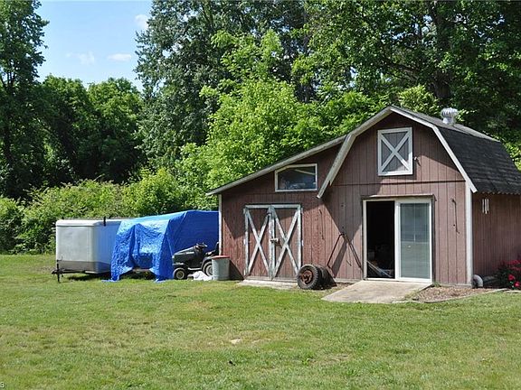 Beautiful updates in this cozy home! Feel like you are in the country, but only minutes to shopping and highway. Entertain on the wrap-around 16x14 deck overlooking the 1+ acre lot, or in your eat-in kitchen complete with granite countertops, tile backsplash and stainless appliances that remain. Washer and dryer are located in the large unfinished basement and also remain. The huge detached garage can double as a workshop with power and lighting. Barn is sold "as-is".