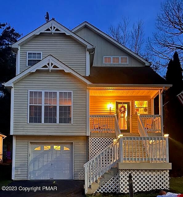 In the highly sought after Country Club of the Pocono Community minutes from I-80 Easy commute to NJ and NYC. This single family well-kept home has views of the golf course. You don't plow snow or cut the grass! The spacious eat-in kitchen has a delightful breakfast nook for casual dining and for formal occasions, a separate dining room. The living room has a fireplace, creating a cozy atmosphere with a separate den for more added space. Top floor offers 3 bedrooms including a primary & ensuite bathroom with a garden tub. This home also has underground utilities, oversized 1 car garage, insulated crawl space for storage, reverse osmosis system, brand new front steps & railing, new rear patio, sealed driveway. The CRS Data is incorrect. This home has 3 bedrooms, 2 1/2 bathrooms at 2280s