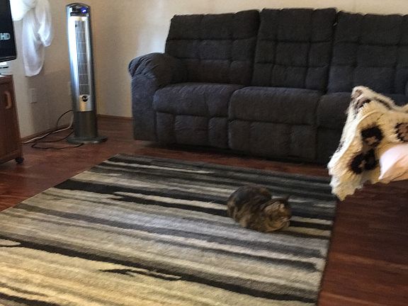 - Living Room: Ceiling-Vaulted, Floors-Laminate, Ceiling Fan