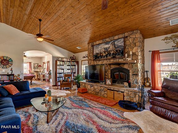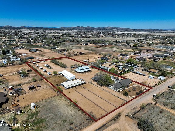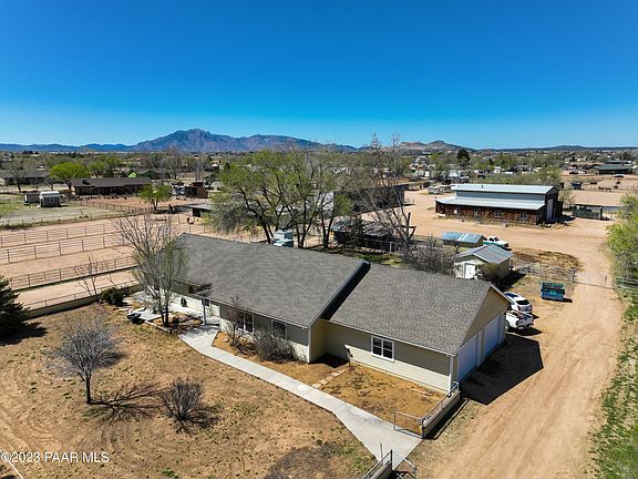 Horse Property on 5 Acres. Country living just minutes from downtown Chino Valley. Main home has large cozy wood burning fireplace. Open floor plan, 3 bedrooms with 2 baths and large rec room. Amazing horse facility's offers a large work shop (almost 5,000 square feet of work space and 16' wide by 14' high overhead door). The Shop-Barn also includes an apartment for ranch hand. Enclosed horse barn includes 7 stalls and tack room & large turnouts. Large hay-bedding storage barn is over 3,000 sq. ft. Numerous turn out pens with shades and a welded in place arena apx. 100'x200'. Current owner has boarded as many as 30 horses on this property at one time. Fully landscaped, fenced & gated. Two good water wells on the property.