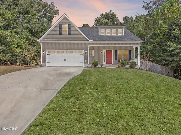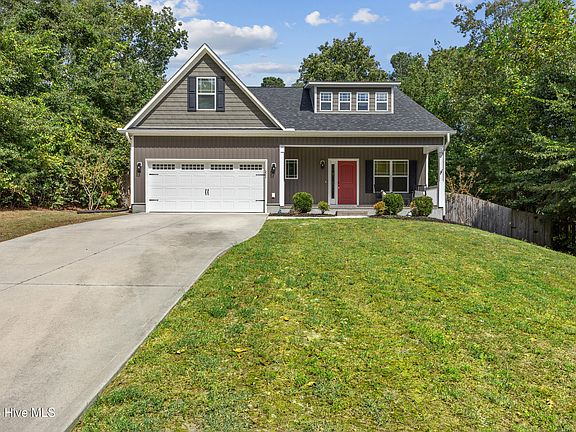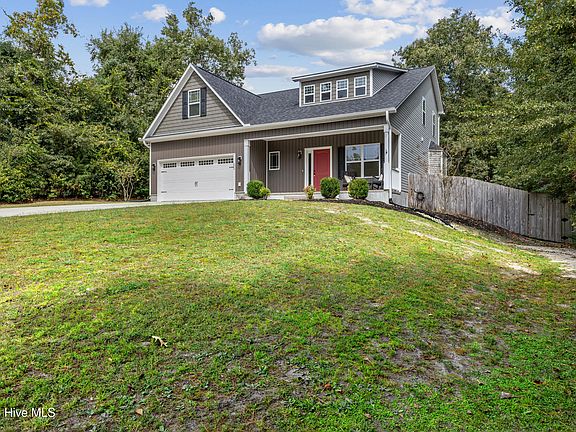 Welcome to your coastal retreat in the desirable Belvedere Plantation community of Hampstead. Built just 7 years ago, this newer construction craftsman sits on a quiet .45-acre lot surrounded by mature trees. Offering 4 bedrooms, 2.5 baths, and over 2,500 sq. ft. of living space, the home also features a large bonus room upstairs—perfect for an entertainment room, home office, or gym. Inside, the open floor plan is filled with natural light and includes LVP flooring, a gas fireplace, and a spacious kitchen with granite counters and stainless appliances. The main-level owner's suite showcases a tiled walk-in shower, dual vanities, and a custom walk-in closet. Outdoors, enjoy a private fenced backyard with an open deck, firepit, and plenty of space to relax—all just minutes from golf, shopping, and a quick drive to Wilmington.