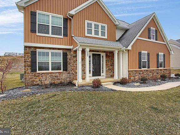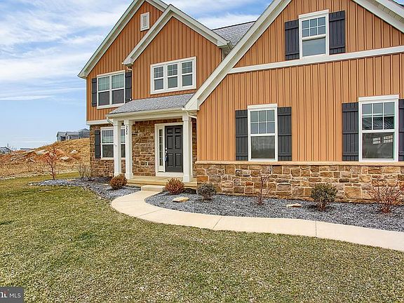 The Falcon II built by Garman Builders. This 2 story, 4 bedroom, 2.5 half bath home is a stunner and located across from 90+ acre public park. The first floor features a beautiful 2 story foyer and breakfast area. The kitchen opens up into the breakfast room and sunken family room with stone fireplace. There is also a study on the first floor. The second floor master suite with walk-in closets along with 3 additional bedrooms, a full bath and separate laundry room complete this master piece. The basement has been wired and is ready to be drywalled. Hunter Douglas blinds and ceiling fans convey with home.