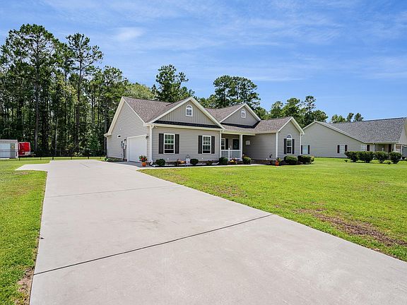 This charming 3 bedroom, 2 bath awaits new homeowners. The home adorns a front porch, rear enclosed porch, hardwood floors in main living areas, carpeted bedrooms and tiled bathrooms and laundry room. The home sits on .51 acres and the oversized drive leads into a side loading garage. Each bedroom in this split bedroom floor plan is spacious, comfortable, and bright. There is plenty of room for entertaining between the two dining areas, living room, and kitchen area bar. This home is a must see for anyone searching for value, space, and aesthetic superiority. This home has all the southern charm you are longing for.