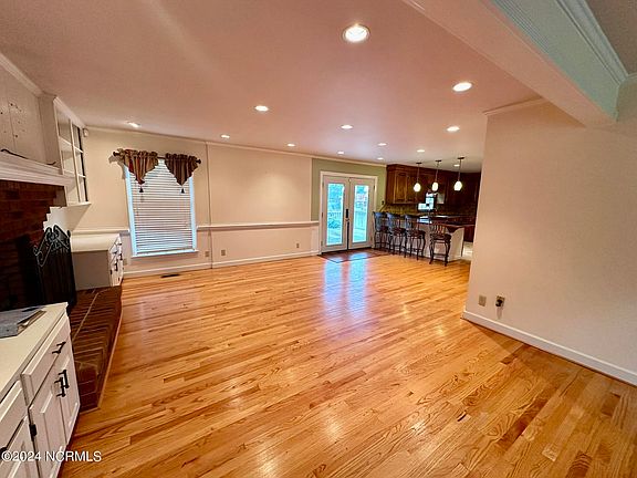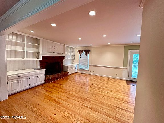 Stunning three-story brick home nestled on a spacious .61-acre lot in Washington, NC. As you approach, you'll be greeted by a paved driveway leading to a two-car garage, a charming covered front porch, and mature landscaping that enhances the home's curb appeal. Step inside to discover an inviting interior featuring tall ceilings, elegant hardwood floors, and detailed crown and chair rail molding. The open floorplan is perfect for modern living. To the left of the entryway, there's a versatile room currently set up as a pool room, which could easily serve as a sitting room or office. This space flows seamlessly into the cozy living area, complete with custom built-ins and a beautiful brick fireplace. The living room opens into a well-appointed kitchen, featuring granite countertops, a stylish tile backsplash, tile flooring, and stainless-steel appliances, making it ideal for both cooking and entertaining. Adjacent to the kitchen is a formal dining room, perfect for hosting family dinners or special occasions. The second floor is home to all three bedrooms, including a spacious primary suite with a HUGE walk-in closet equipped with custom built-ins, and an en-suite bathroom boasting dual sinks and a walk-in shower. The third floor offers a large bonus room with hardwood flooring, built-in storage, and a custom bench seat, providing plenty of space for relaxation or play. The additional room on the third floor has vaulted ceilings and hardwood floors and is a great flex space for storage or hobby room. Outside, the deck overlooks the expansive backyard, perfect for outdoor gatherings and enjoying the serene surroundings. Conveniently located between Greenville and Little Washington, this home offers easy access to area shopping, dining, and more. Don't miss the opportunity to make 220 Holly Drive your own!