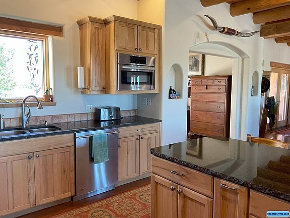 Beautiful Southwestern home that sit on a ridge above the Gila River Valley with the Mogollon Mountains looming in the background. A beautiful spot to enjoy the covered patio and watch the sun set. The many windows in the home invite the outdoor beauty inside. The construction is insulated concrete forms making it easy to heat and cool. The wood stove will heat the home if you choose to use wood rather than the propane heat pump. The open floorplan makes a great space to entertain. The kitchen's custom design will please most any chef. Custom cabinets and beautiful black granite counter are only a few of the designer elements in this home. A walk in panty provides extra storage. The living room is designed to enjoy the outdoor beauty in all the many windows. The beautiful wood viga and tongue and grove ceilings create a true southwestern feel. If you wish to walk or go horseback riding, rock lined paths take you to beautiful spots on the land. Watch the Virtual Tour!